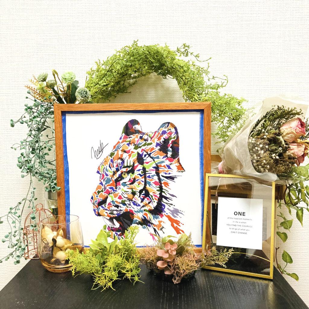 「絵画 × インテリア雑貨」の中間に位置するため、他の商品にはない扱いやすさがあります。